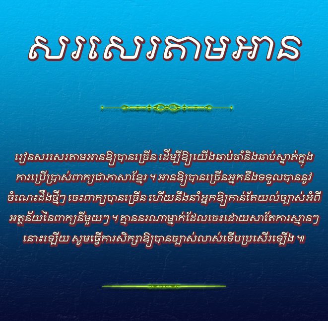 Khimsoft អាចនឹងជូនដំណឹងនៅពេលក្រោយទៀត ប្រសិនបើមានការប្រែប្រួលផ្សេងៗ ។ អ្នកនឹងមិនមានសិទ្ធិក្នុងការលួចចម្លងឬធ្វើត្រាប់តាមរចនាប័ទ្មពុម្ពអក្សរទាំងអស់ដែល Khimsoft បានរចនារួចហើយឡើយ ប្រសិនបើគ្មានការអនុញ្ញាតពី Khimsoft ឬស្ថាប័នសាមីដែលបានអនុញ្ញាតផ្ដល់សិទ្ធិក្នុងការកែសម្រួលដល់ Khimsoft ។
