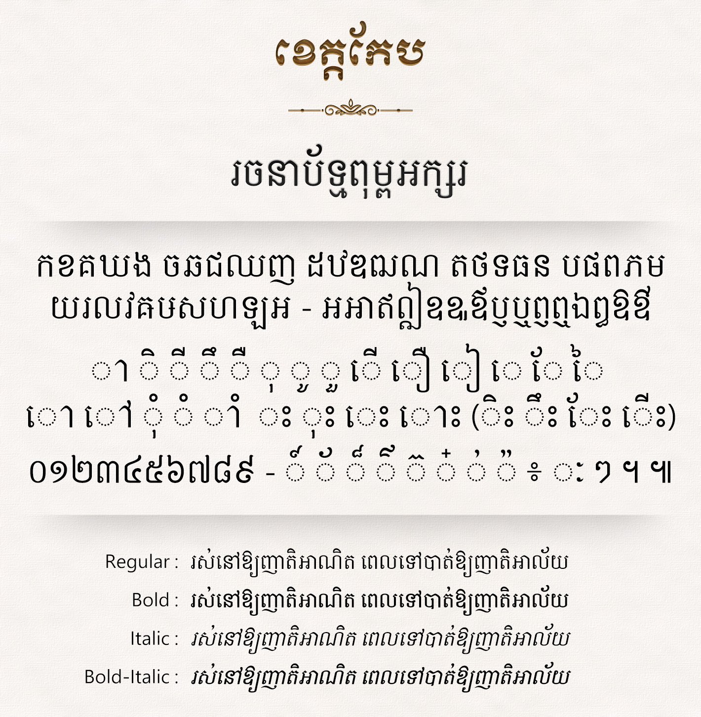 1. Font Name: Khimsoft Kep