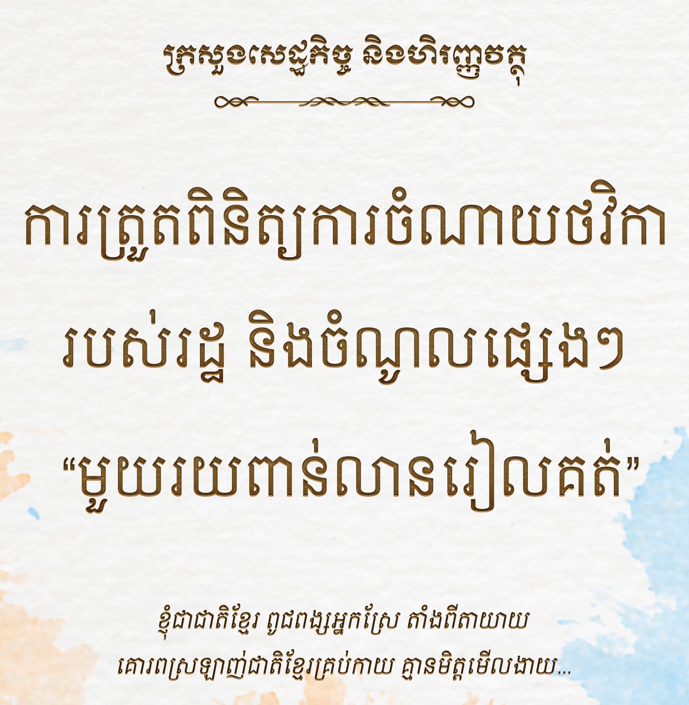 យើងខ្ញុំសង្ឃឹមថាពលរដ្ឋខ្មែរគ្រប់រូបគួរគិតឡើងវិញ ដើម្បីលើកស្ទួយសង្គមជាតិរបស់យើង ការបង្កើនធនធានមនុស្ស ការគោរពច្បាប់គ្រប់ប្រភេទដែលប្រទេសយើងមាន តាមរយៈការឱ្យតម្លៃ ការគោរពស្រឡាញ់ ដែលជាផ្នែកមួយក្នុងការចូលរួមកសាង និងអភិវឌ្ឍន៍ប្រទេសដ៏កម្សត់មួយនេះឱ្យឈានទៅរកលទ្ធផលចាប់ពីពេលឥឡូវនេះ ។