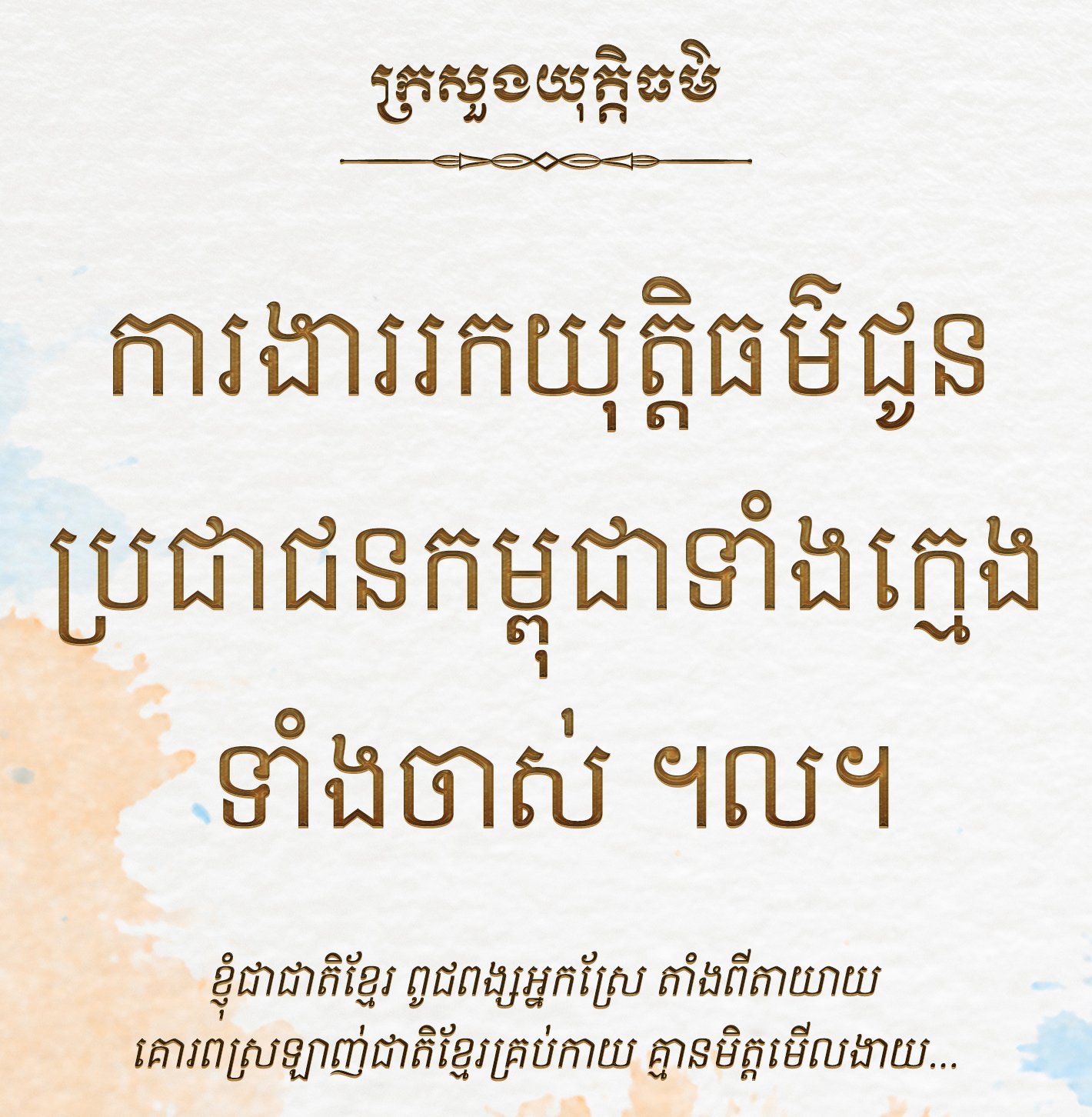 Khimsoft អាចនឹងជូនដំណឹងនៅពេលក្រោយទៀត ប្រសិនបើមានការប្រែប្រួលផ្សេងៗ ។ អ្នកនឹងមិនមានសិទ្ធិក្នុងការលួចចម្លងឬធ្វើត្រាប់តាមរចនាប័ទ្មពុម្ពអក្សរទាំងអស់ដែល Khimsoft បានរចនារួចហើយឡើយ ប្រសិនបើគ្មានការអនុញ្ញាតពី Khimsoft ឬស្ថាប័នសាមីដែលបានអនុញ្ញាតផ្ដល់សិទ្ធិក្នុងការកែសម្រួលដល់ Khimsoft ។