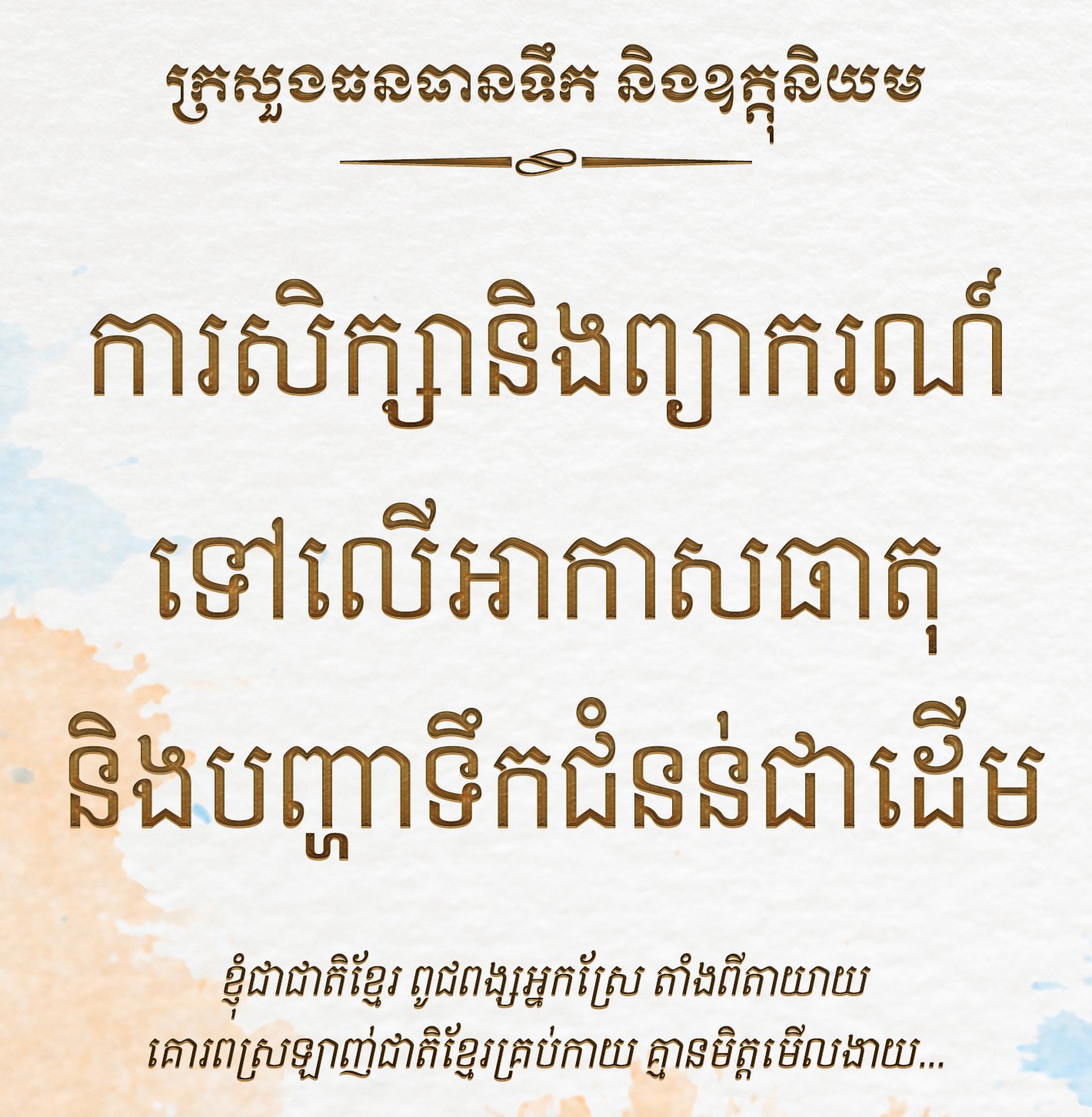 Khimsoft MOWRAM ត្រូវបានបង្កើតឡើងសម្រាប់ក្រសួងធនធានទឹក និងឧត្តុនិយម ។ ការរចនាត្រូវបានធ្វើឡើងតាមការរៀបចំរបស់ Khimsoft តែប៉ុណ្ណោះ វាមិនមែនជាការផ្ដល់នូវអនុសាសន៍ឬស្នើសុំណាមួយពីអង្គភាពសាមីឡើយ ហើយអក្សរទាំងនេះអាចនឹងមានការប្រែប្រួលឬធ្វើបច្ចុប្បន្នភាព ដែលជាហេតុធ្វើឱ្យតំណចាស់អាចនឹងត្រូវបានលុបចេញ តែយ៉ាងណាគ្រប់ពុម្ពអក្សរទាំងនោះ យើងខ្ញុំនៅតែរក្សាក្នុងបញ្ជីពុម្ពអក្សរតាមស្ថាប័នឬក្រសួងនោះដដែល ។