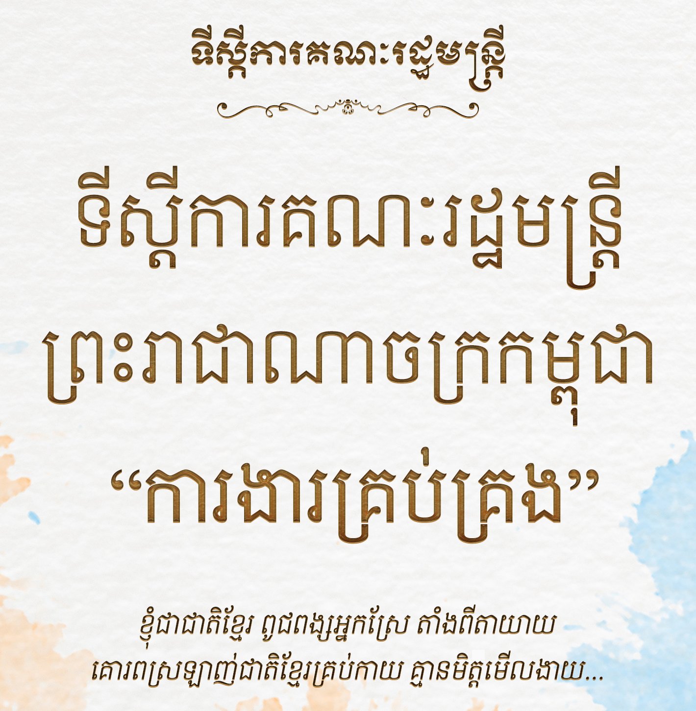 Khimsoft OCM ត្រូវបានបង្កើតឡើងសម្រាប់ទីស្ដីការគណៈរដ្ឋមន្រ្តី នៃ ព្រះរាជាណាចក្រកម្ពុជា ។ ការរចនាត្រូវបានធ្វើឡើងតាមការរៀបចំរបស់ Khimsoft តែប៉ុណ្ណោះ វាមិនមែនជាការផ្ដល់នូវអនុសាសន៍ឬស្នើសុំណាមួយពីអង្គភាពសាមីឡើយ ហើយអក្សរទាំងនេះអាចនឹងមានការប្រែប្រួលឬធ្វើបច្ចុប្បន្នភាព ដែលជាហេតុធ្វើឱ្យតំណចាស់អាចនឹងត្រូវបានលុបចេញ តែយ៉ាងណាគ្រប់ពុម្ពអក្សរទាំងនោះ យើងខ្ញុំនៅតែរក្សាក្នុងបញ្ជីពុម្ពអក្សរតាមស្ថាប័នឬក្រសួងនោះដដែល ។