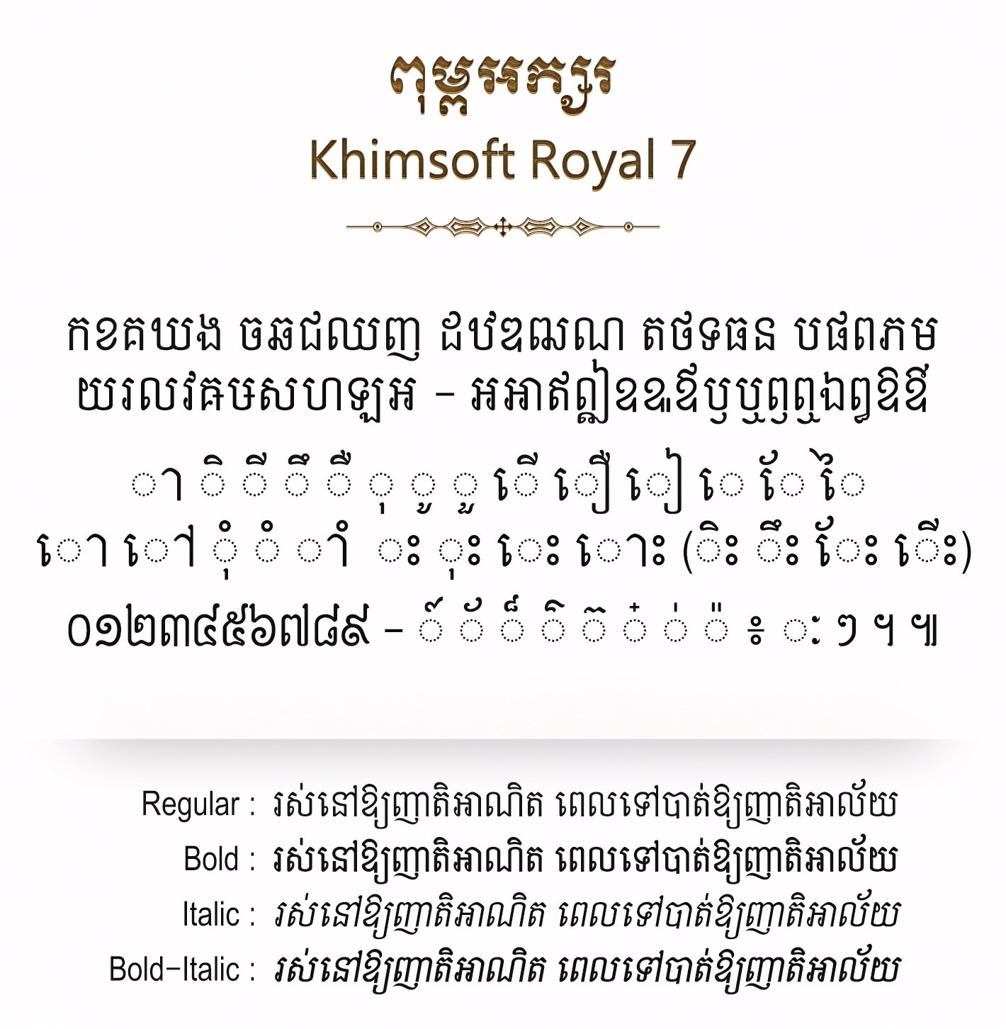1. Font Name: Khimsoft Royal 7