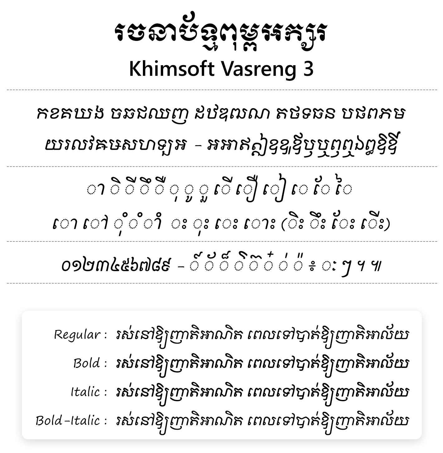 Khimsoft អាចនឹងជូនដំណឹងនៅពេលក្រោយទៀត ប្រសិនបើមានការប្រែប្រួលផ្សេងៗ ។ អ្នកនឹងមិនមានសិទ្ធិក្នុងការលួចចម្លងឬធ្វើត្រាប់តាមរចនាប័ទ្មពុម្ពអក្សរទាំងអស់ដែល Khimsoft បានរចនារួចហើយឡើយ ប្រសិនបើគ្មានការអនុញ្ញាតពី Khimsoft ឬស្ថាប័នសាមីដែលបានអនុញ្ញាតផ្ដល់សិទ្ធិក្នុងការកែសម្រួលដល់ Khimsoft ។