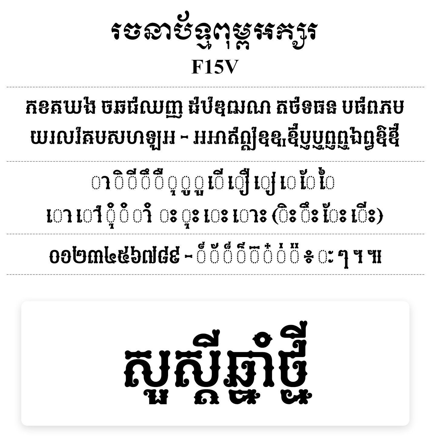 ពុម្ពអក្សរ F15V ត្រូវបានរចនាឡើងជាប្រភេទអក្សរដែល ដែលអាចប្រើប្រាស់បានតាមការគួរ ។ អ្នកអាចធ្វើការរចនាឬ Design ដោយការច្នៃប្រឌិត រំលេច Layer Style (ប្រសិនបើអ្នកប្រើប្រាស់ Photoshop, Illustrator) ឬមួយក៏ WordArt (ប្រសិនបើអ្នកប្រើប្រាស់ Microsoft Office) ។