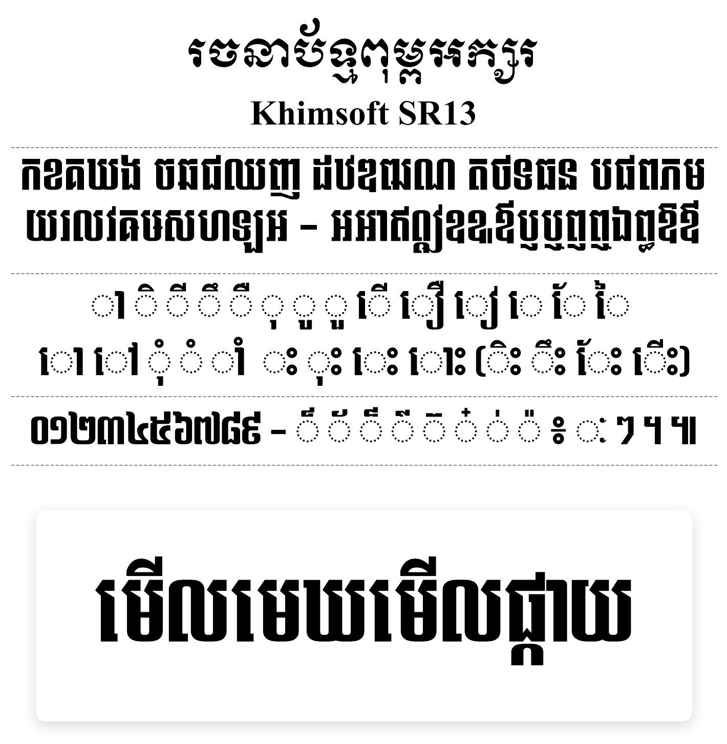 Khimsoft អាចនឹងជូនដំណឹងនៅពេលក្រោយទៀត ប្រសិនបើមានការប្រែប្រួលផ្សេងៗ ។ អ្នកនឹងមិនមានសិទ្ធិក្នុងការលួចចម្លងឬធ្វើត្រាប់តាមរចនាប័ទ្មពុម្ពអក្សរទាំងអស់ដែល Khimsoft បានរចនារួចហើយឡើយ ប្រសិនបើគ្មានការអនុញ្ញាតពី Khimsoft ឬស្ថាប័នសាមីដែលបានអនុញ្ញាតផ្ដល់សិទ្ធិក្នុងការកែសម្រួលដល់ Khimsoft ។